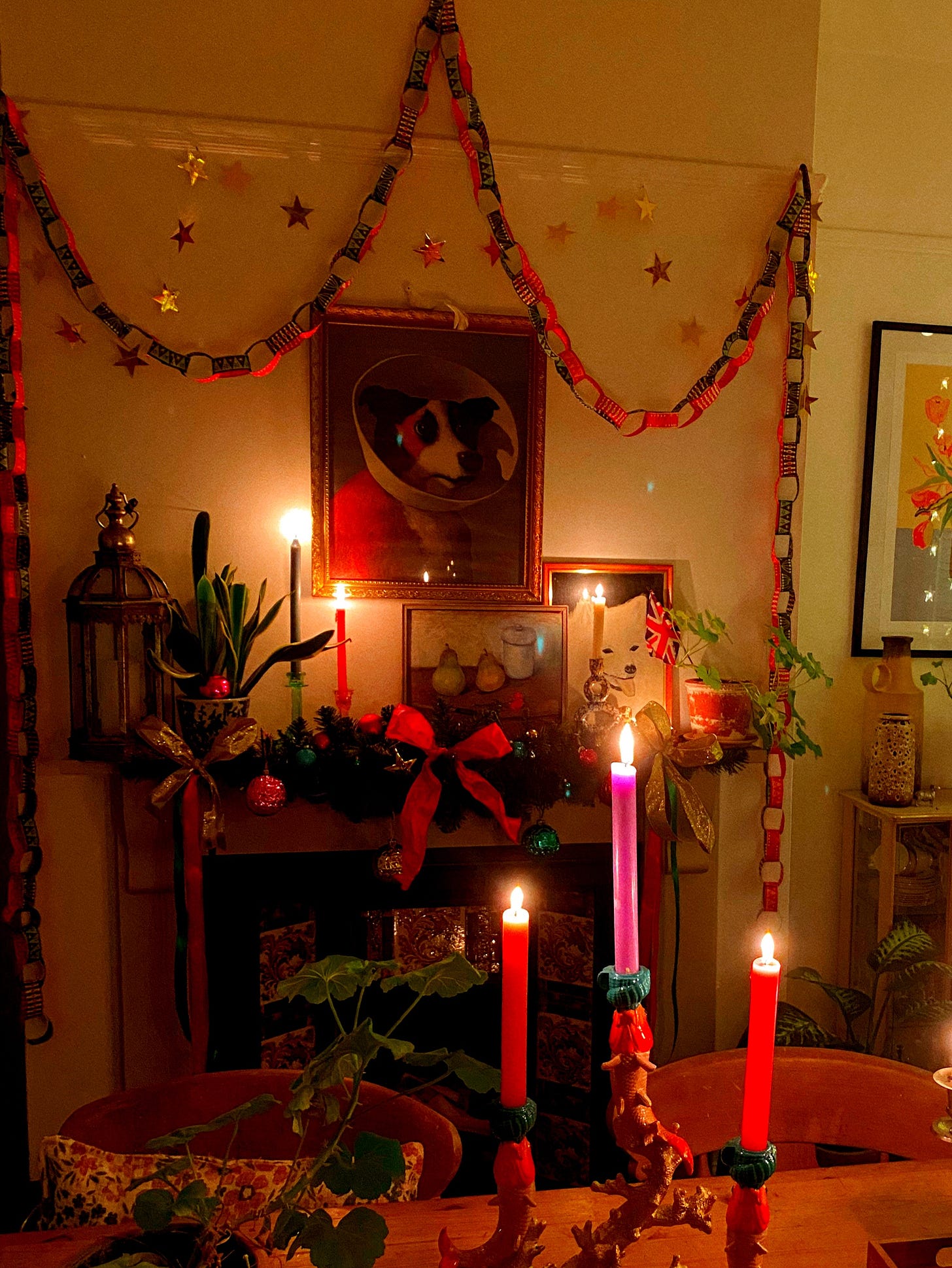The garlands (also artificial) are held in place by truly some of the most insane Alex T Smith engineering and if they survive in place until 12th night we’ll be lucky.