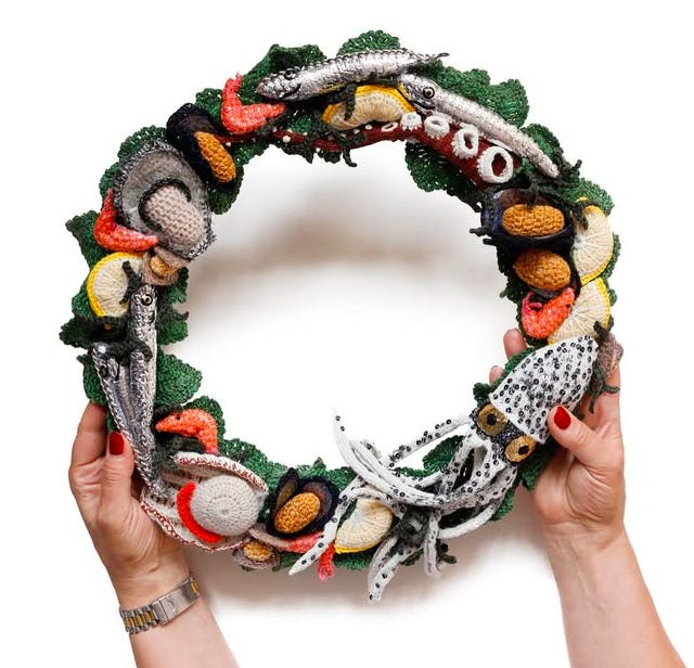 Handmade crocheted FISHMAS wreath! So SPLENDID!