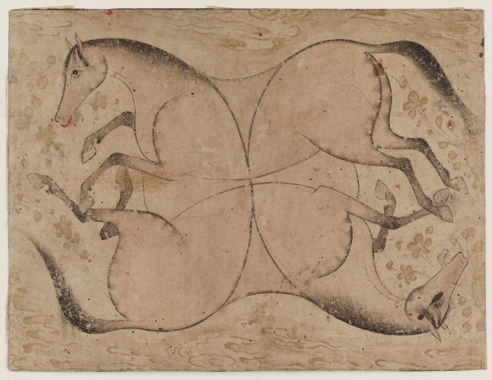 Four Interlaced Horses (Safavid period, Iran, early 17th Century) Isn’t it great? I think this would make a great repeat pattern on fabric or wallpaper.