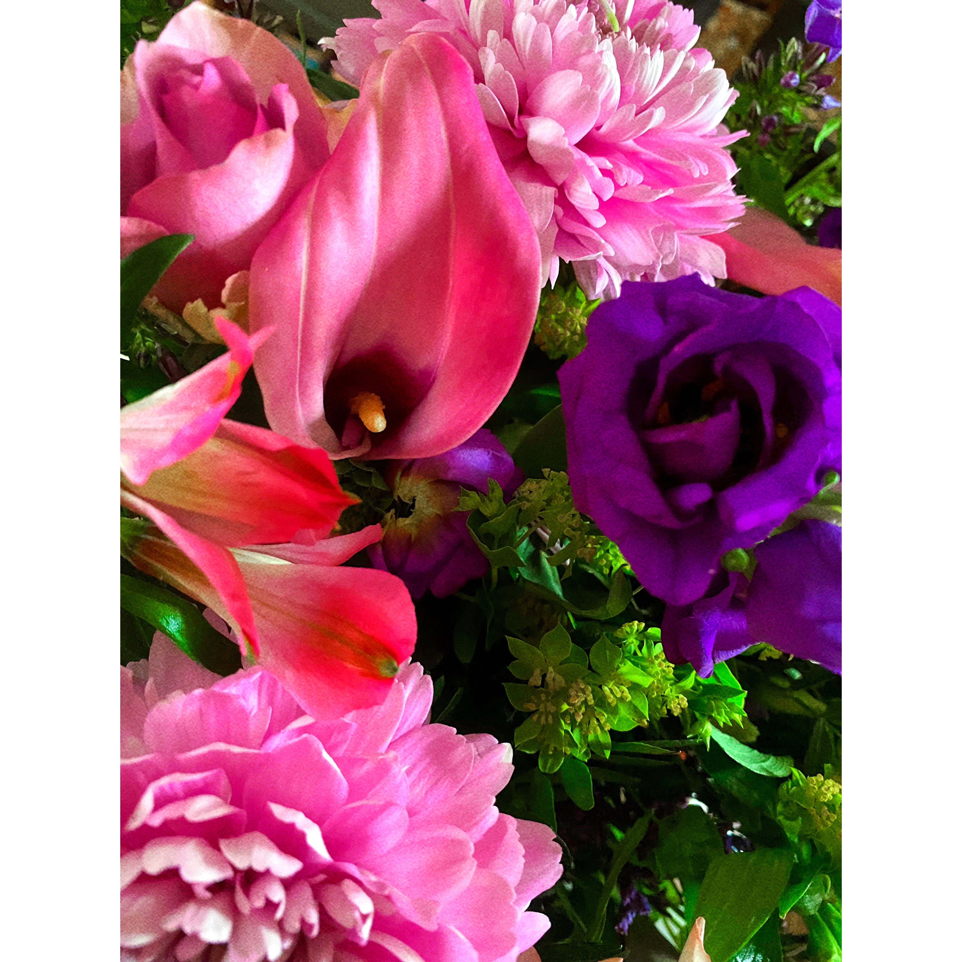 Secondly, more lovely pinkness! This beautiful bouquet was a surprise delivery to me the other day. So much to enjoy here!